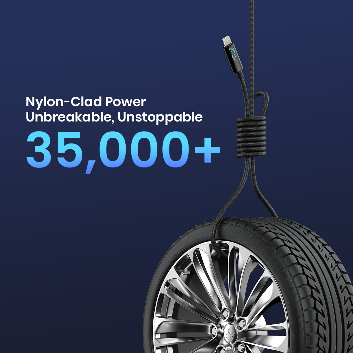 Portronics Konnect View 20 W Unbreakable USB to 8 Pin Cable with LED Display, 480Mbps Data Sync, Compatible with All Lightning Devices 1.2M Length